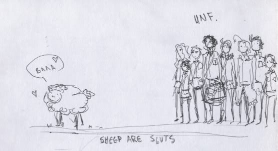 Also thinking of sheep clinging randomly reminded me of this retarded fanart my friend did